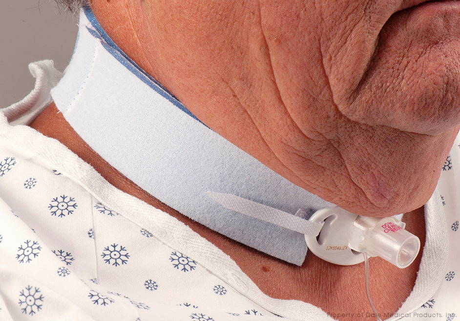 Los soportes para tubos de traqueotomía Dale están diseñados para proporcionar un posicionamiento seguro y minimizar el movimiento del tubo de traqueotomía. El forro que absorbe la humedad en la banda para el cuello ajustable deja la piel seca, lo que reduce el riesgo de rotura de la piel. Las pestañas de cierre seguras y fáciles de usar se ajustan a cualquier tamaño de placa de traqueostomía.